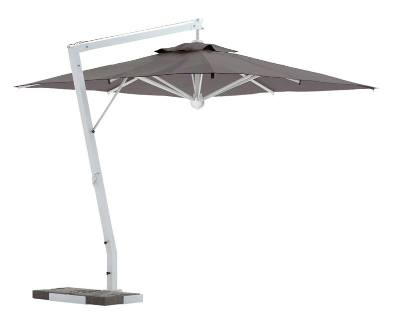 Оновлена модель – повністю алюмінієвий каркас із посиленими елементами зі сталі, вкрита порошковою фарбою яскравого білого кольору. Ця парасоля гармонійно впишеться в сучасний вишуканий інтер'єр. Посилені алюмінієві спиці.